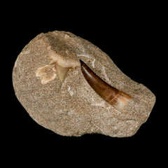 Plesiosaurus  was a large marine sauroptergyian reptile that lived in the Jurassic Period. Distinguished by a small head, long slender neck, and two pairs of large paddles (fins). Plesiosaurs ate Belemnites (squid-like creatures) and fish. These predators gave live birth in open water. Roughly twice the size of a grown man, half their length was neck! Check out our teeth selection, which changes with new items found in our travels.